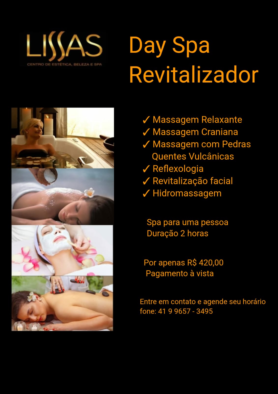 A Lissas Centro de Massoterapia, beleza e Spa Urbano Curitiba oferece um ambiente tranquilo ideal para repor as energias, aliviar as tensões e stress do dia a dia e lhe devolver a essência por meio do equilíbrio corpo e mente.
